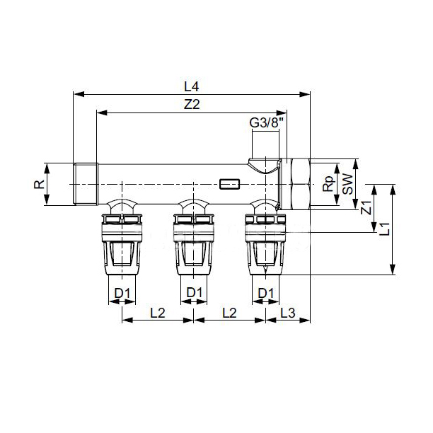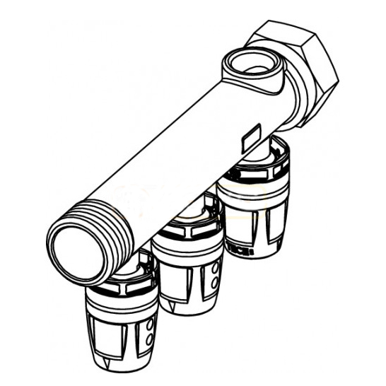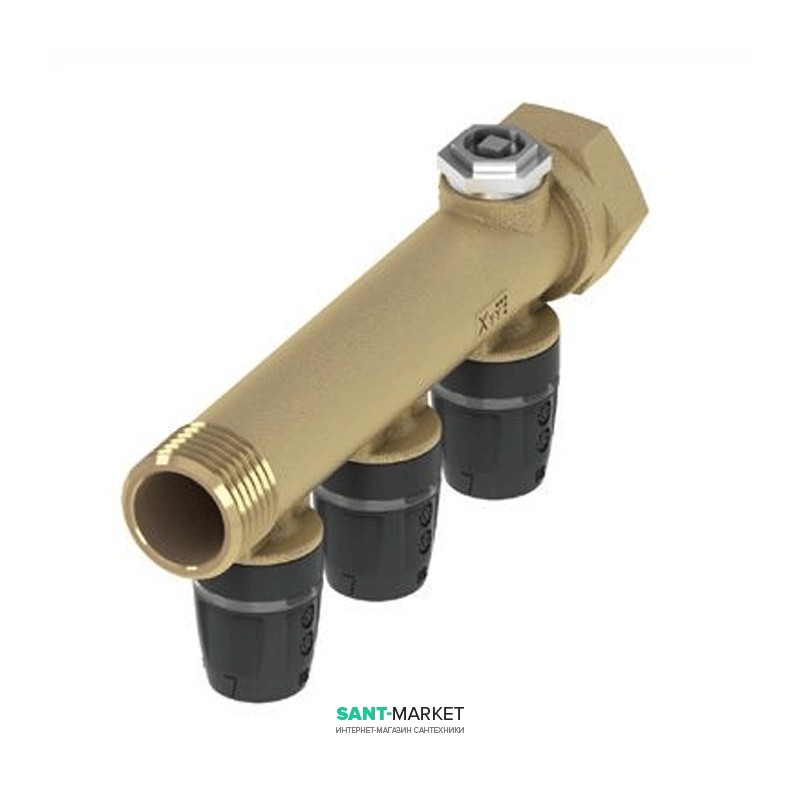- Корпус с внутренне-наружной резьбой с присоединением 3/4 дюйма. Подключение возможно с любой стороны. Отдельные гребёнки могут объединяться между собой, что позволяет подстроиться под систему с любым количеством контуров.