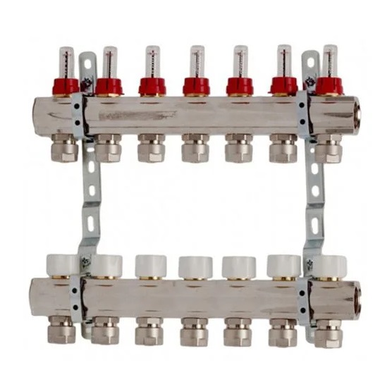 1) Коллектор для систем напольного отопления Luxor 7 контуров с расходомером и термоклапаном