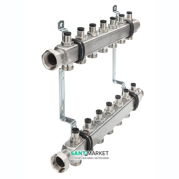 Коллектор для системы отопления с запорными вентилями в сборе, 2 контура, 1"- 3/4" EK, нержавеющая сталь
