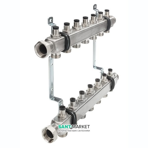 Коллектор для системы отопления с запорными вентилями в сборе, 7 контуров, 1"- 3/4" EK, нержавеющая сталь
