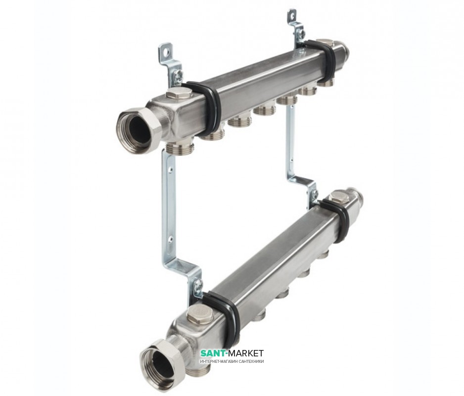 - 2 двойных настенных кронштейна 200 x 54,4 x 34,5 со структурными звукоизолирующими вставками (DIN 4109), вкл. монтажный материал (1 двойной настенный кронштейн для распределителя с 2 контурами отопления)