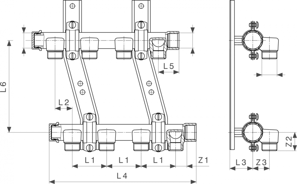 Коллектор Viega Pexfit Pro 2005 6 выходов для холодной и 6 для горячей воды бронза 125929