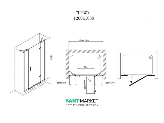 Душевая дверь в нишу Koller Pool Waterfall line стеклянная распашная 120х185 CUP30X
