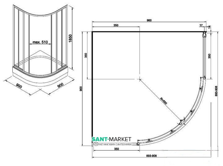 Размер: 90x90x185 см