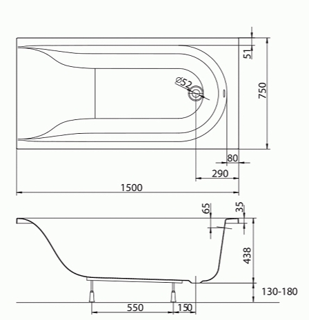 Данная ванна - это воплощение классических форм и простоты совершенства. Удобная форма в области спины позволит полностью расслабится, а суженные борта ванной гарантируют большой объем воды.