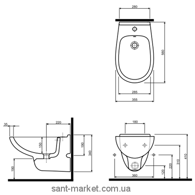 Биде подвесное KOLO коллекция NOVA TOP 56х36х41 с переливом 65100000