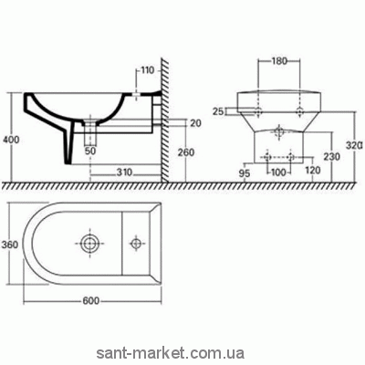 Биде подвесное KOLO коллекция Quattro 60х36х40 с переливом K65110900