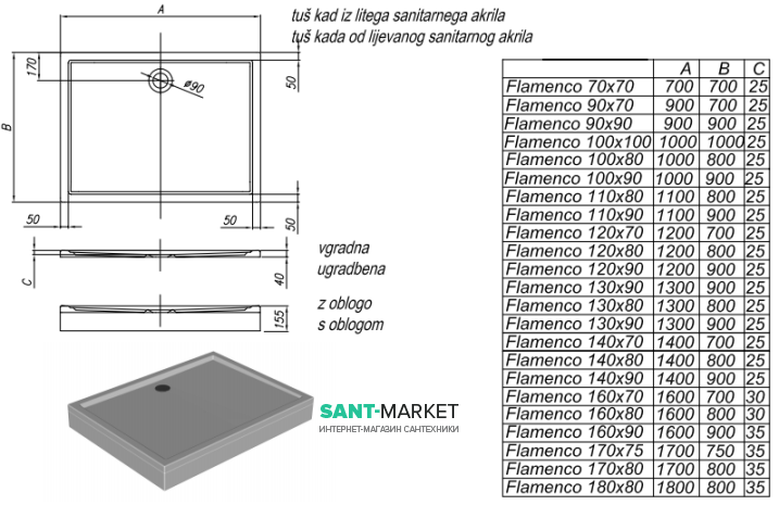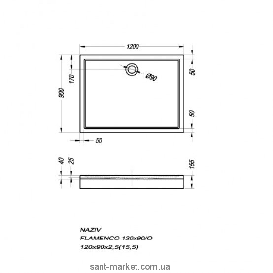 Душевой поддон акриловый прямоугольный Kolpa-San Flamenco (без панели) 120х90х4 белый Flamenco 120