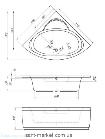 Ванна акриловая угловая Kolpa-san коллекция Royal 130х130х64