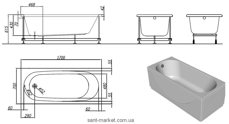 Ванна акриловая прямоугольная Kolpa-san коллекция Tamia 170х70х61