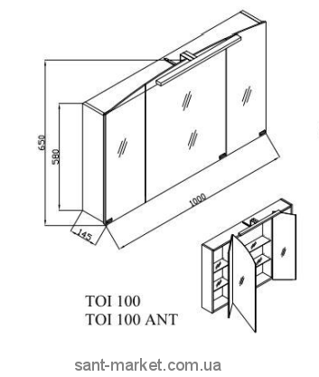 Kolpa-san Зеркальный шкаф со светильником Iman TOI 100