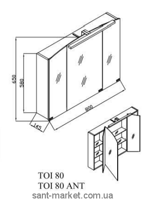 Kolpa-san Зеркальный шкаф со светильником Iman TOI 80
