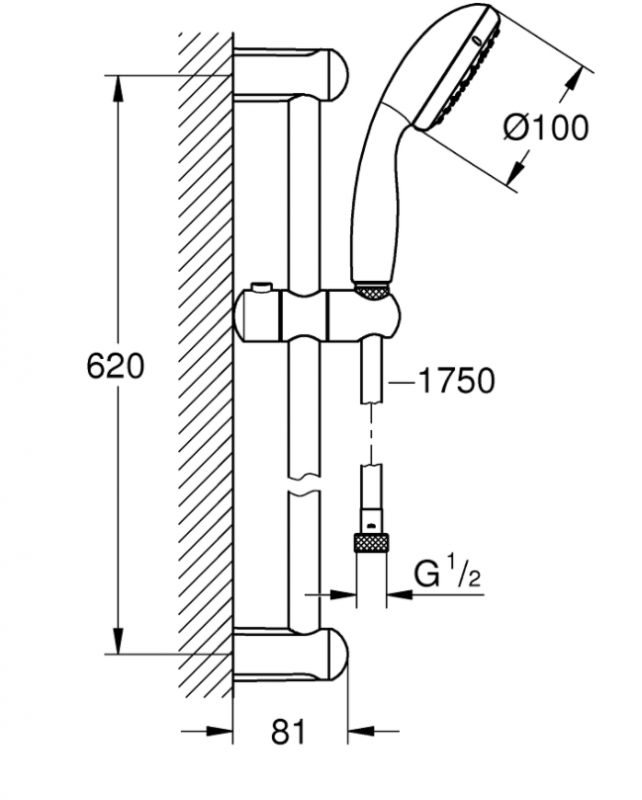Диаметр ручной лейки: 100 мм