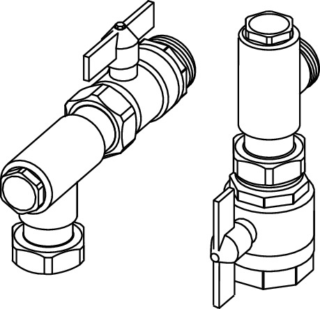 - Включает шаровой кран прямой / обратной линии с угловым соединением.