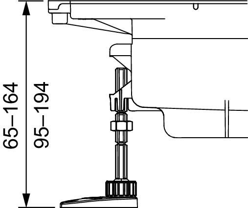 Монтажные опоры для сифона TECEdrainprofile, для быстрого выравнивания по высоте и фиксации положения при установке на уровне с необработанными поверхностями. Диапазон регулироваки сифона 95-194 мм (расстояние от нижнего края опор до верхнего края сифона или верхнего края бесшовного пола).