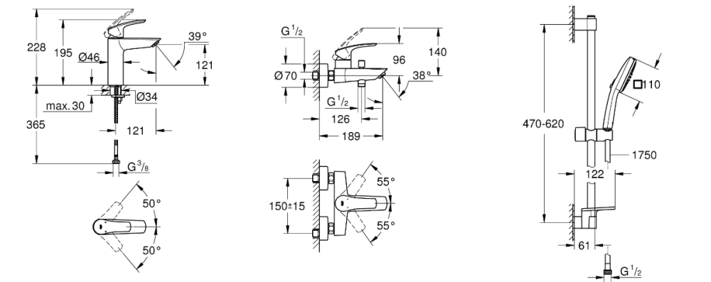 - GROHE FastFixation (регулируемый верхний кронштейн для имеющихся отверстий)
