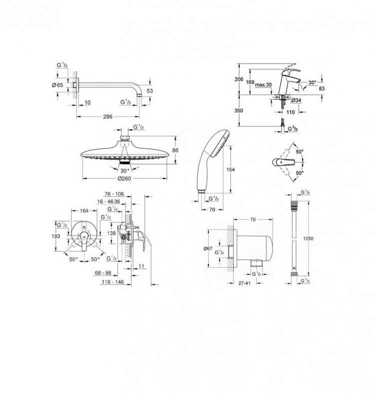 Комплект смесителей Grohe Eurosmart 7в1 хром 25183005