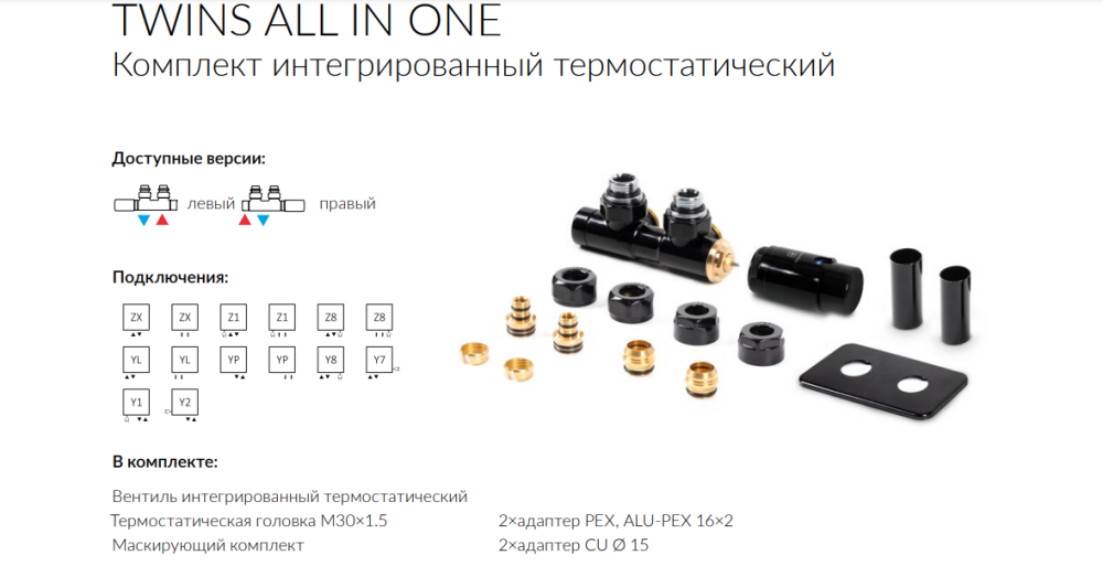 Комплект Теrma Twins All in One термостатический угловой левый белый мат