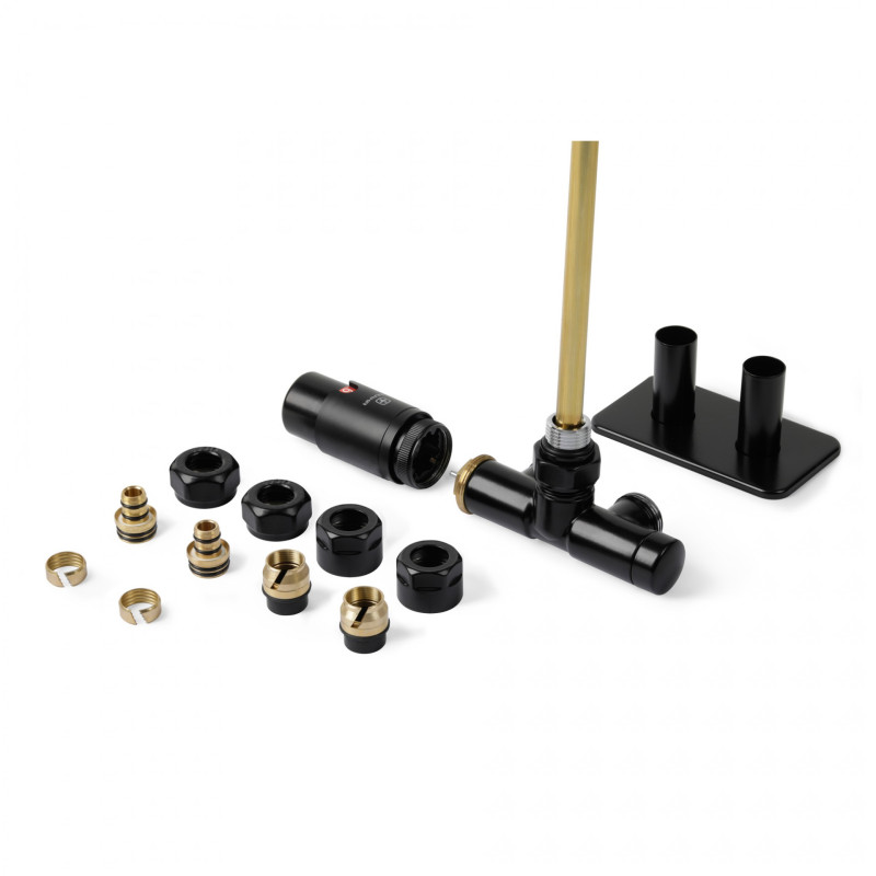 Комплект Теrma Unico All in One термостатический угловой с трубкой правый черный мат