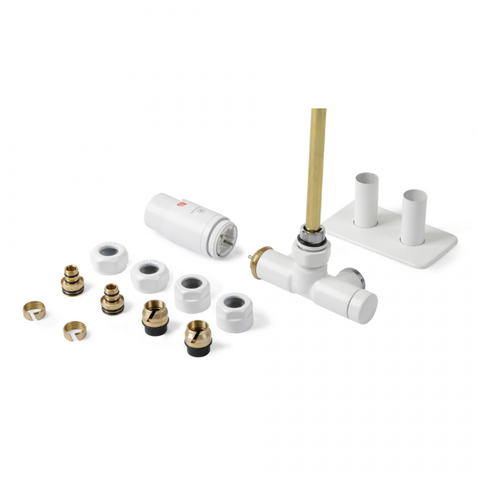 Комплект Теrma Unico All in One термостатический угловой с трубкой левый белый мат