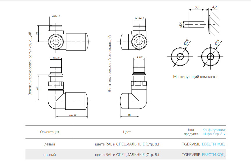 Комплект Теrma Vision All in One регулирующий трехосевой правый хром