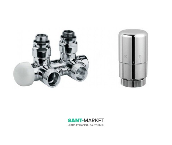 Комплект термостатический кран + Запорно-регулирующий клапан Caleido хром 101022CR