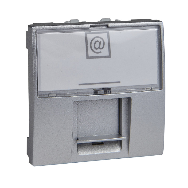 1) Компьютерная розетка Schneider Electric Unica RJ45 категория 6 UTP 2 модуля алюминий