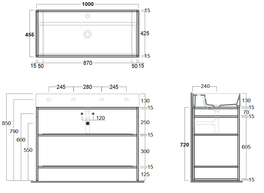 1) Консоль для раковины Simas Agile напольная 101х46 см металл черный матовый