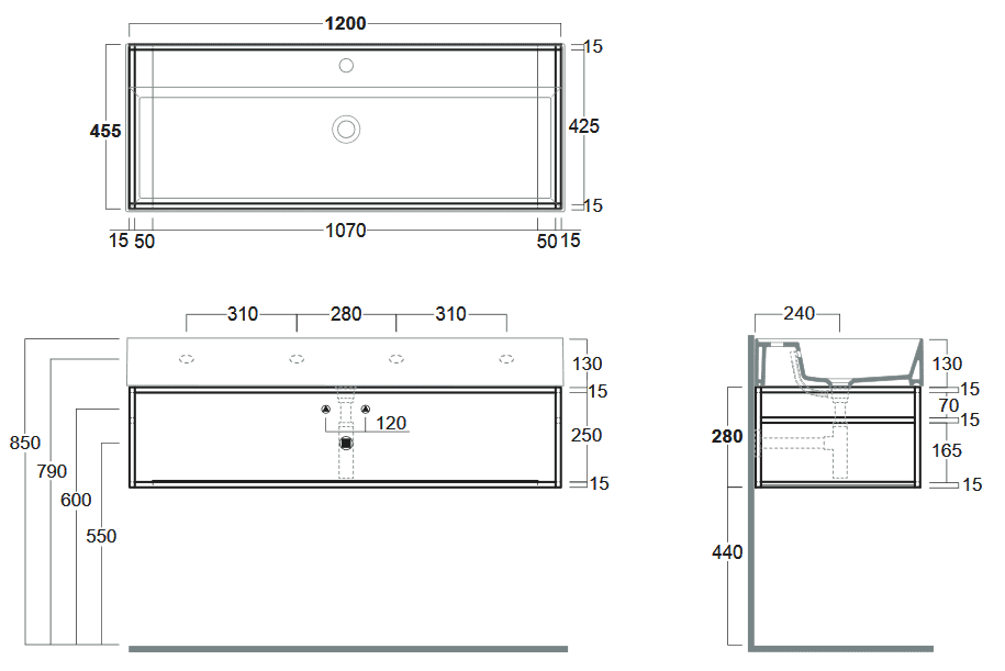 1) Консоль для раковины Simas Agile подвесная 121х46 см металл черный матовый