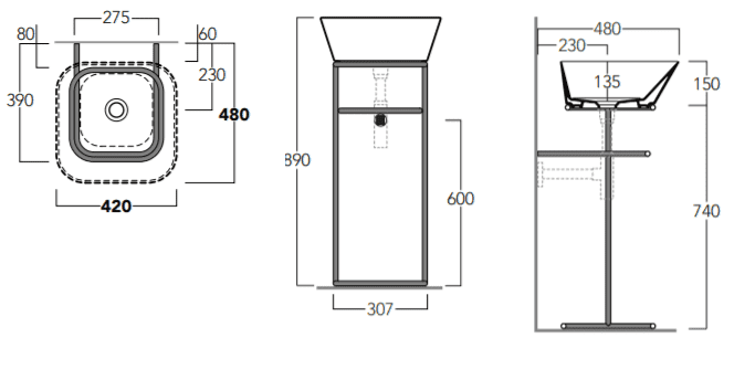 Консоль для раковины Simas Wave напольная 30х40 см металл черный матовый