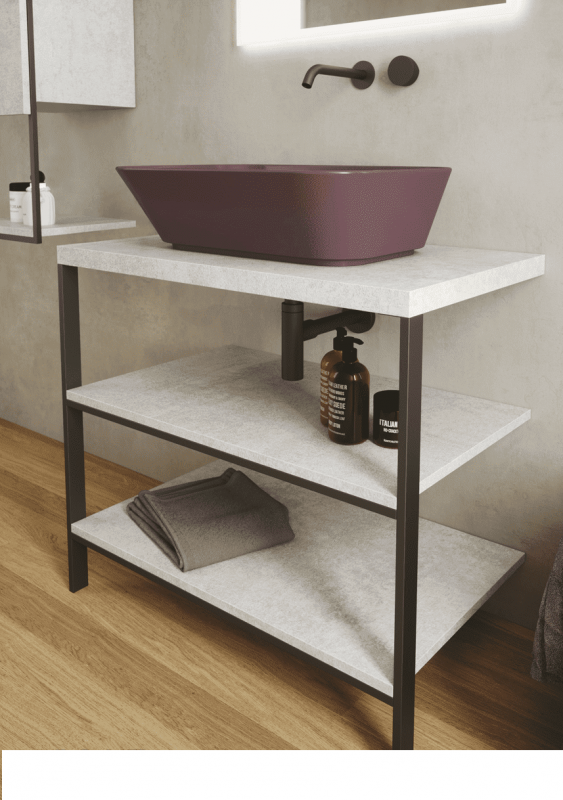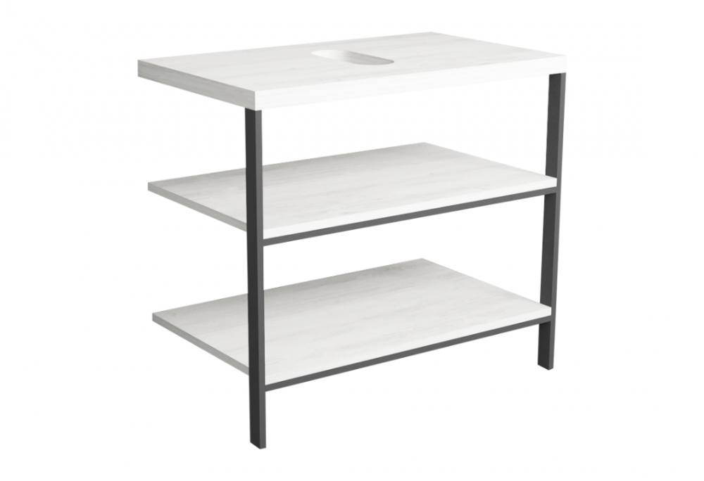 - Металлическая структура с 2 ногами с деревянными полками для раковины