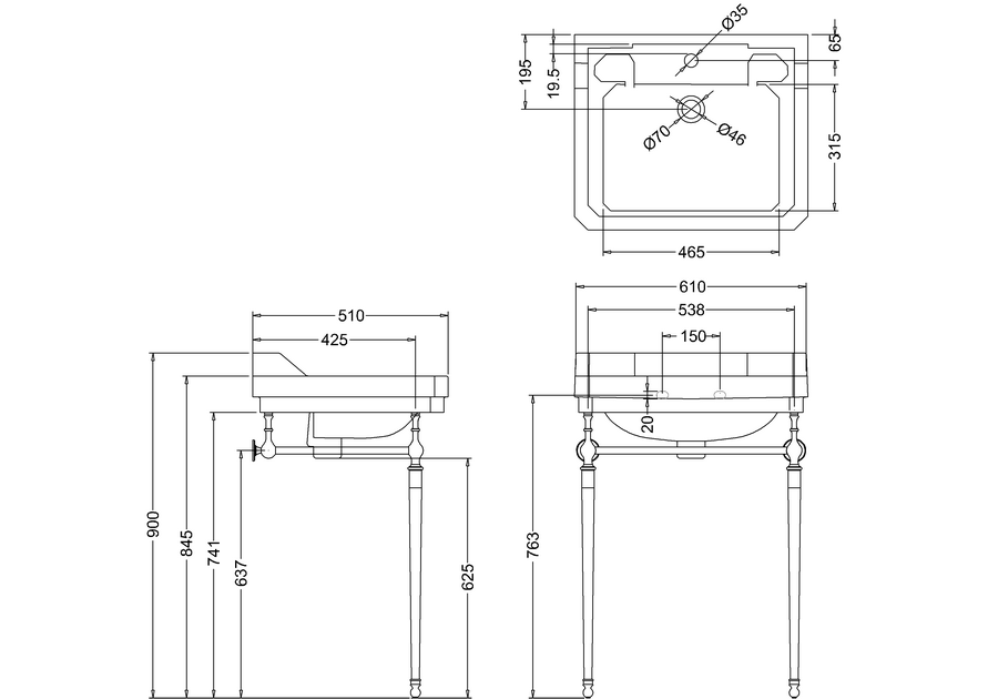 Консоль под прямоугольную раковину Burlington 59.8 см латунь хром T23A CHR
