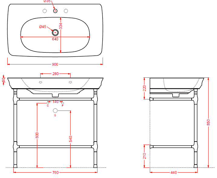 Консоль под раковину ArtCeram Civitas на 90 см с полкой золото