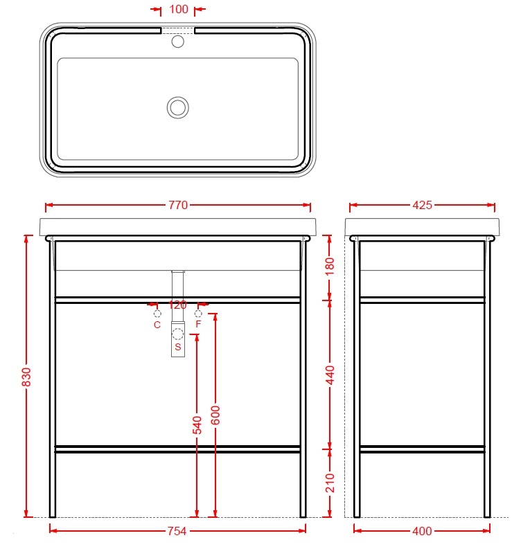 Консоль под раковину Artceram Fuori Scala на 80 см металл белый матовый ACA057 05