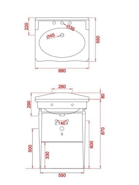 - Консоль под раковину на 68 см, со стеклянной полкой