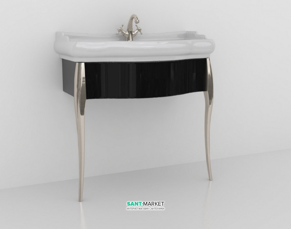 Консоль под раковину Kerasan Retro 73 см чёрный глянцевый ножки хром