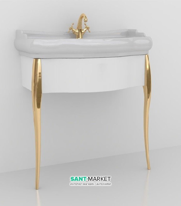 Консоль под раковину Kerasan Retro 73 см белый глянцевый ножки золото