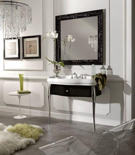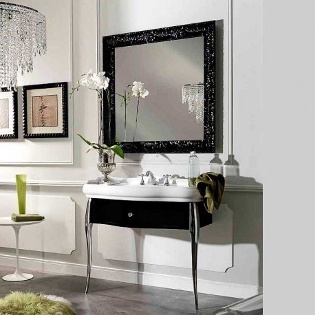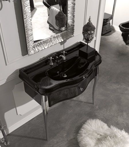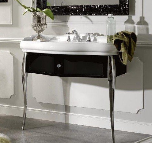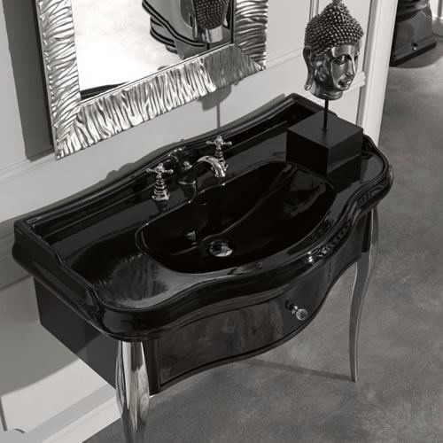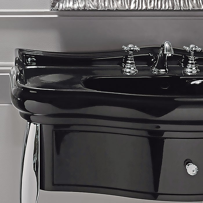 Консоль под раковину Kerasan Retro чёрный глянцевый ножки хром ручка-кристалл с окантовкой хром