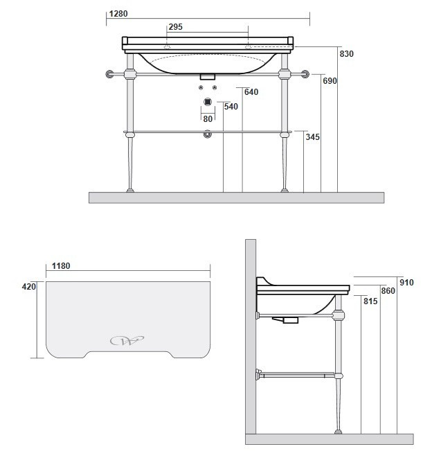 Консоль под раковину Kerasan Waldorf 120 см со стеклянной полкой золото