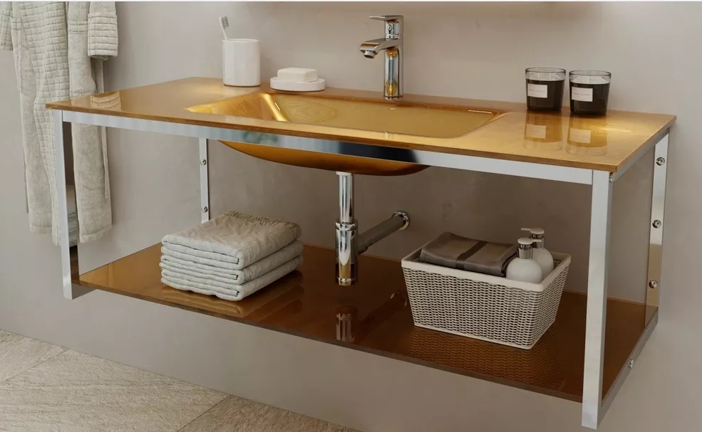 Консоль с раковиной Marsan Quadro 120х50 см нержавеющая сталь/стекло золото