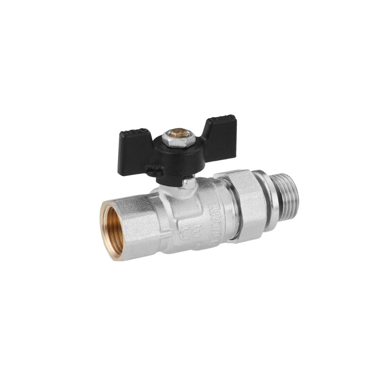 Кран-американка шаровой прямой Kroner KN-06/15 ½'' ВН PN40 бабочка латунь никелированная CV033220