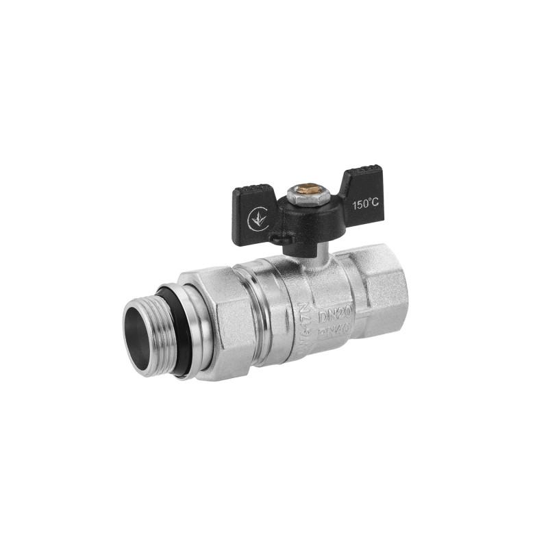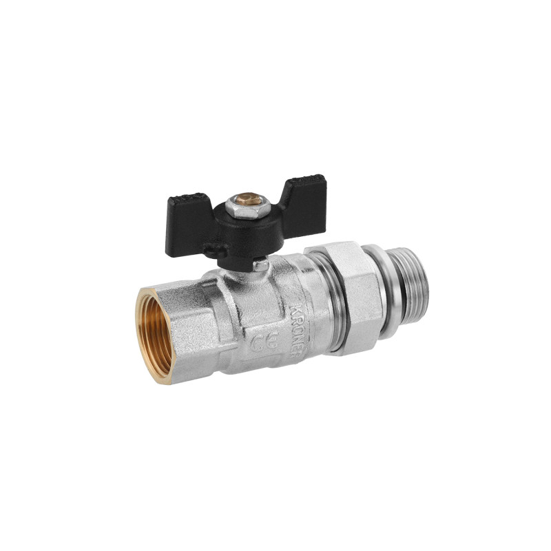 Кран-американка шаровой прямой Kroner KN-06/16 ¾'' ВН PN40 бабочка латунь никелированная