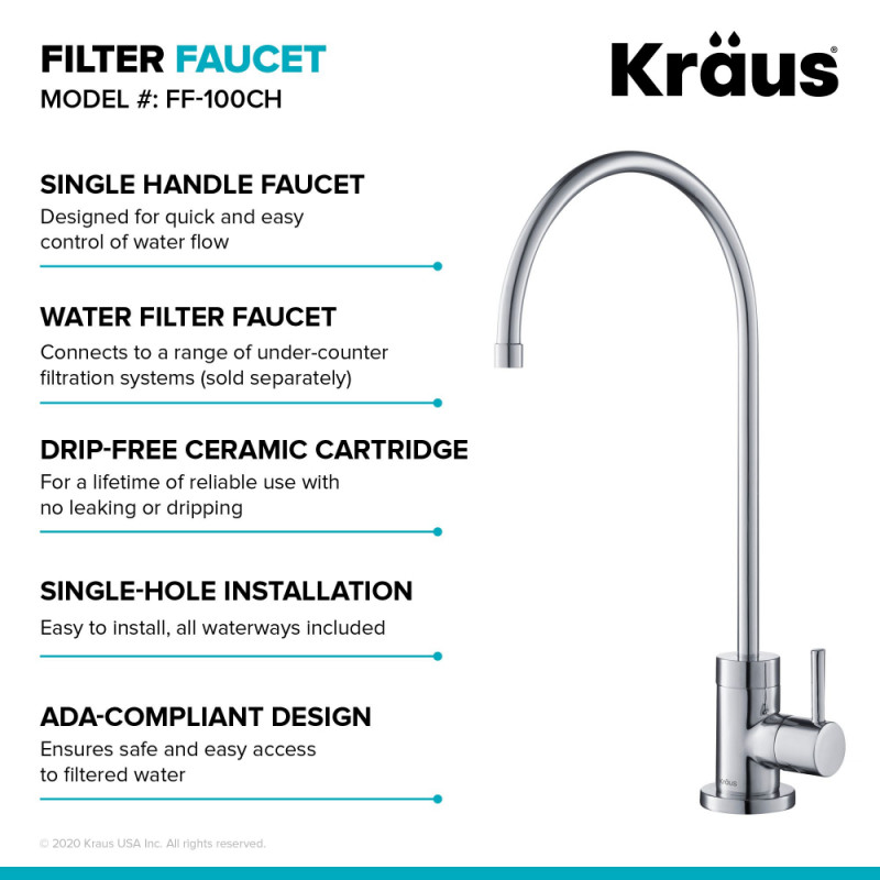 Кран для фильтрованной воды Kraus Purita однорычажный латунь хром FF-100CH