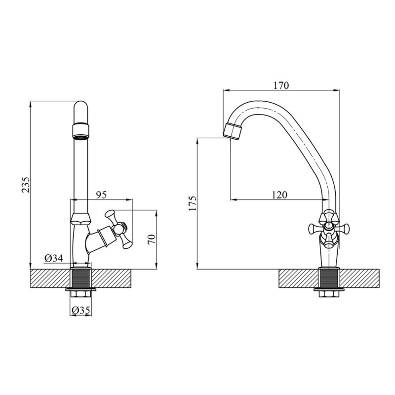 Кран для кухни на одну воду Kroner KRM Rhein-C090 одновентильный хром