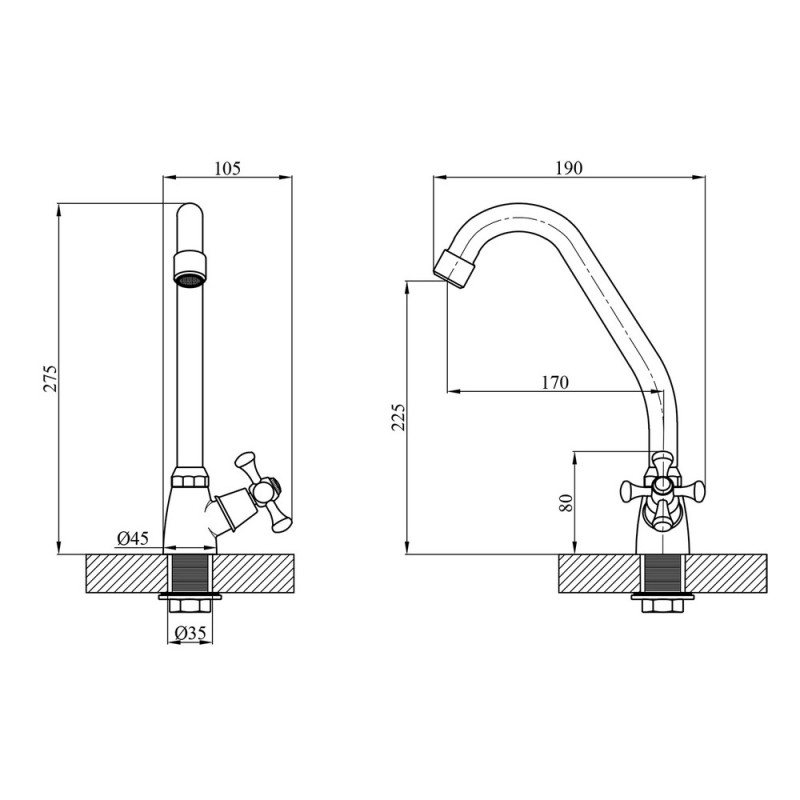 Кран для кухни на одну воду Kroner KRM Rhein-C091 одновентильный хром
