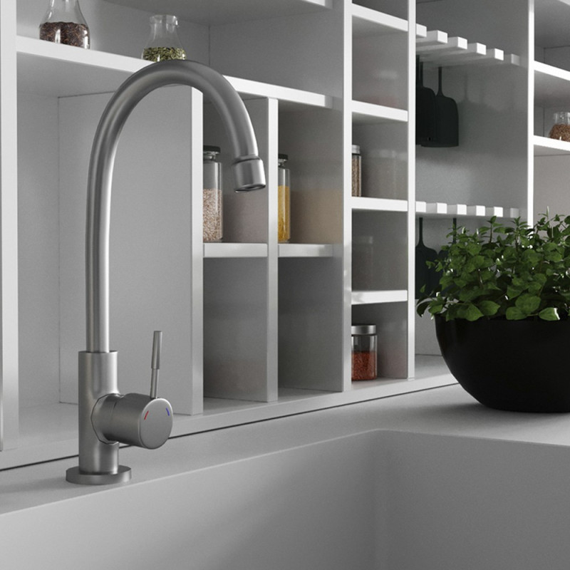Кран для кухни на одну воду Kroner KRP Edelstahl Klassisch-ESG098 однорычажный никель CV022970