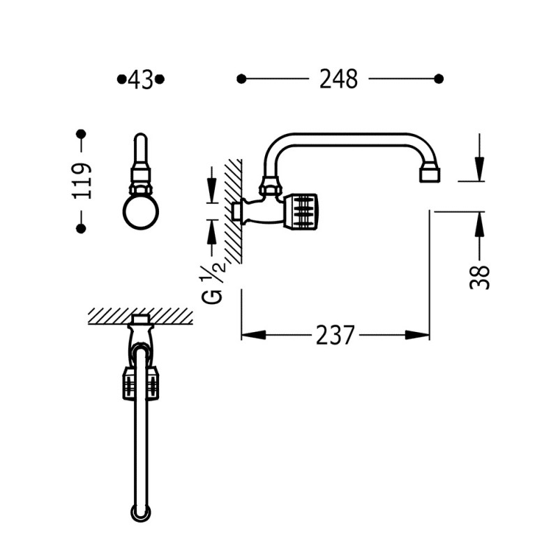 1) Кран для кухни Tres Ese-23 одновентильный настенный хром
