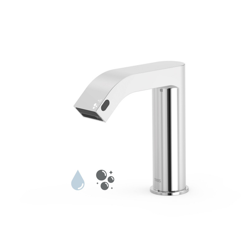 Кран для раковины Tres Electronic электронный на одну воду с автоматическим дозатором мыла хром