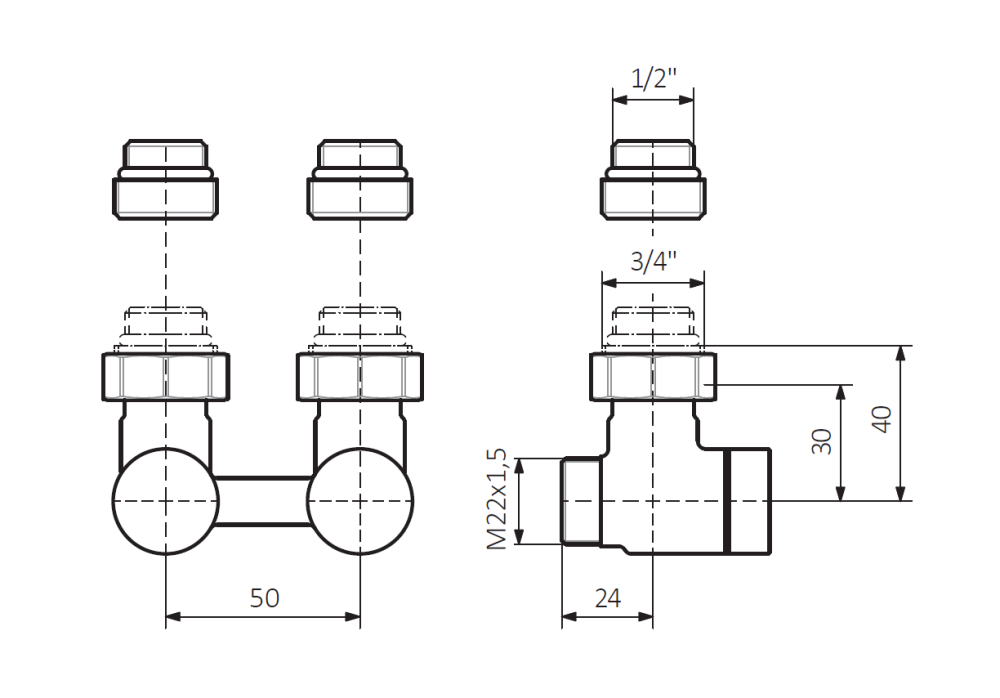 GW 3/4" (GZ 1/2") - GZ M22x1,5