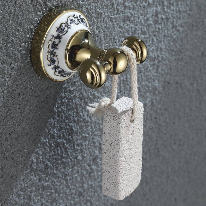 1) Крючок для ванной Kraus Apollo двойной латунь золото